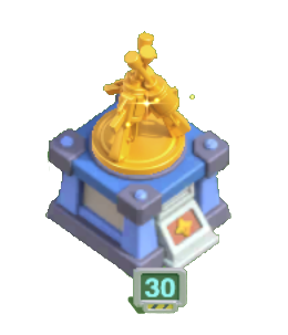頑丈な台座の上に立つ黄金の小銃像。無限の力と戦闘意志を象徴し、英雄の攻撃力を増幅する。